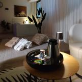 Piscina riscaldata con angolo idromassaggio, sauna finlandese, bagno turco, tepidarium, docce emozionali, percorso Kneipp, panche riscaldate, area relax, angolo tisaneria con degustazione infusi e tisane.
